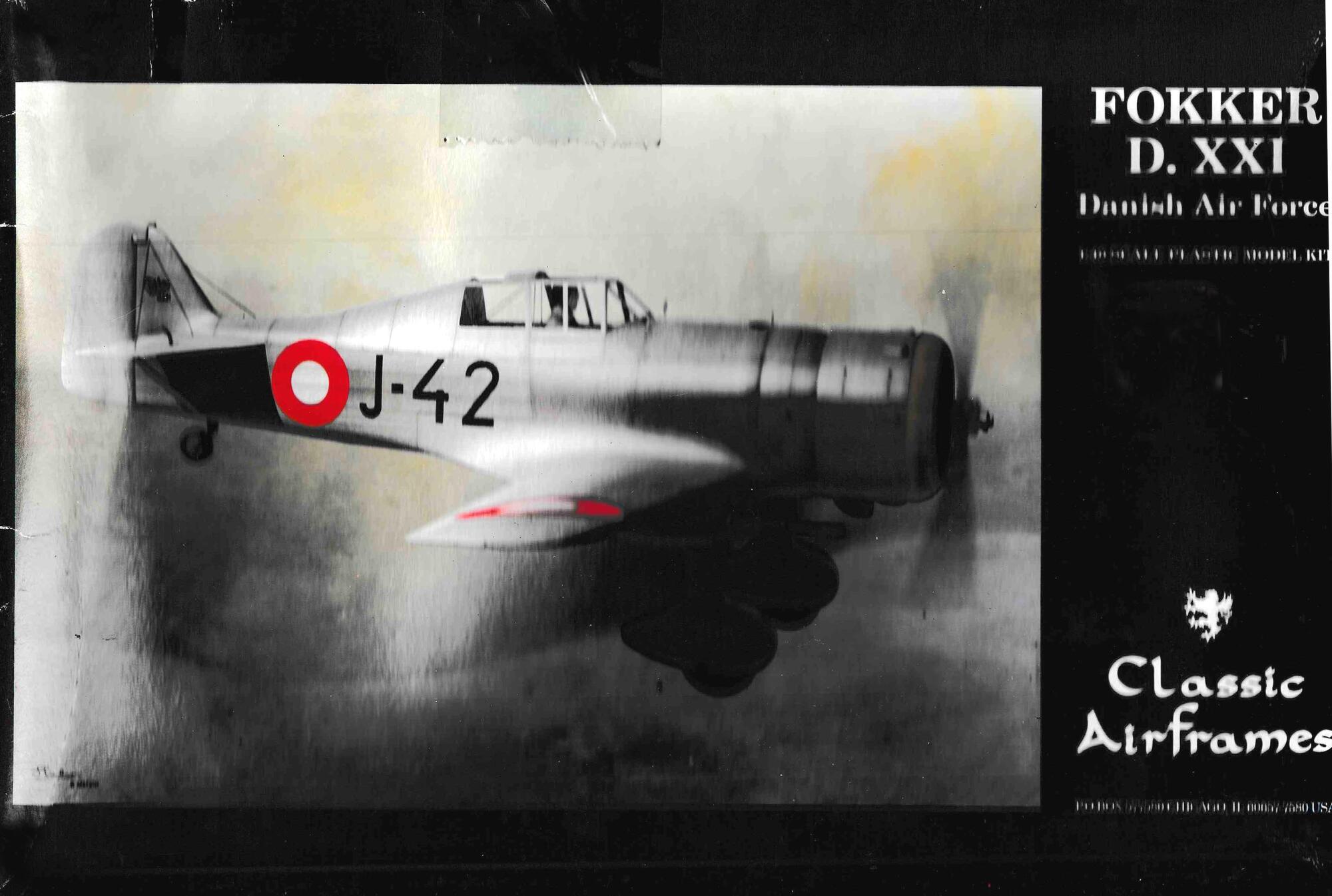 Classic Air Frames 4153. Kgl. danske flyvevåben Fokker D, XXI. Skala 1/48. Æsken er lidt skrammet på grund af alder.