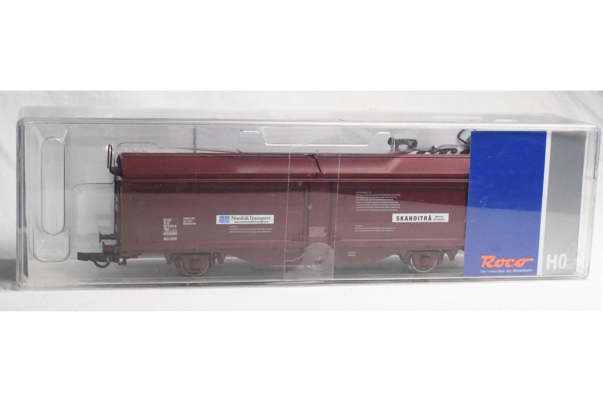 Roco 76169/3. SJ Tbis 25 74 571 5 141-9. Dodsvogn med skydevægge og skydetag.